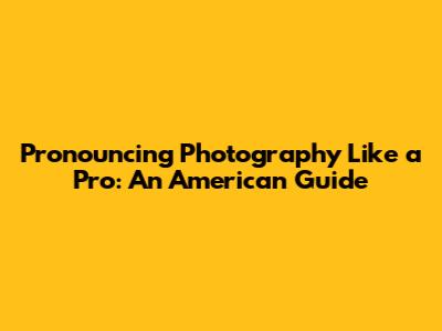 Pronouncing Photography Like A Pro: An American Guide