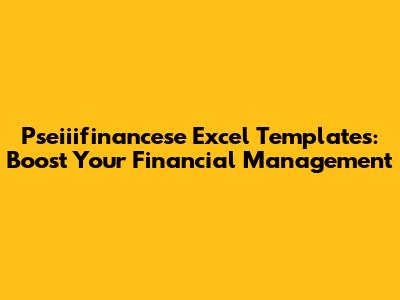 Pseiiifinancese Excel Templates: Boost Your Financial Management