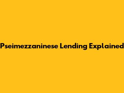 Pseimezzaninese Lending: A Comprehensive Guide