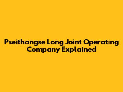 Pseithangse Long Joint Operating Company Explained