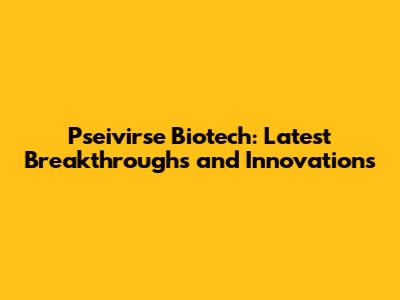 Pseivirse Biotech: Latest Breakthroughs And Innovations