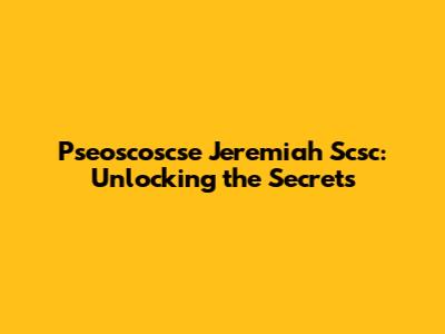 Pseoscoscse Jeremiah Scsc: Unlocking The Secrets