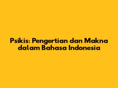 Psikis: Pengertian Dan Makna Dalam Bahasa Indonesia