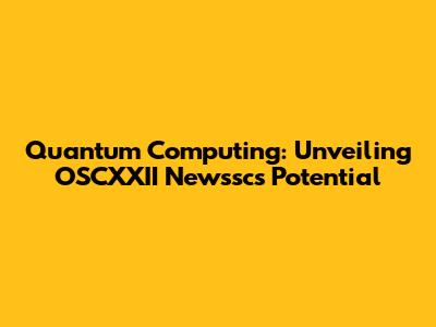 Quantum Computing: Unveiling OSCXXII Newssc's Potential
