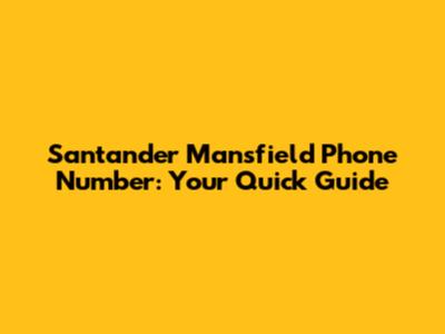 Santander Mansfield Phone Number: Your Quick Guide