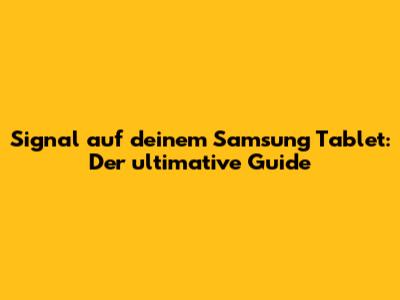 Signal Auf Samsung Tablet: So Klappt's!