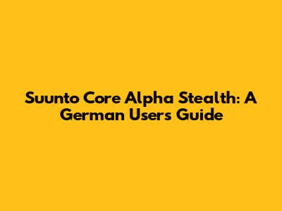 Suunto Core Alpha Stealth: A German User's Guide
