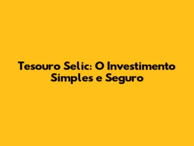 Tesouro Selic: O Investimento Simples E Seguro