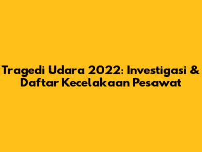 Daftar kecelakaan pesawat 2022 mencakup berbagai insiden yang terjadi di seluruh dunia. Beberapa kecelakaan tersebut menarik perhatian publik karena melibatkan pesawat komersial atau menimbulkan korban jiwa dalam jumlah besar. Setiap insiden ini memiliki karakteristiknya masing-masing, mulai dari lokasi kejadian, jenis pesawat yang terlibat, hingga penyebab yang diduga. Misalnya, sebuah pesawat komersial yang mengalami masalah teknis saat lepas landas, atau sebuah pesawat pribadi yang jatuh karena cuaca buruk. Penting untuk dicatat bahwa informasi yang tersedia tentang setiap kecelakaan mungkin berbeda-beda, tergantung pada tingkat investigasi yang dilakukan dan ketersediaan informasi publik. Beberapa kecelakaan mungkin masih dalam tahap investigasi, sementara yang lain telah merilis laporan akhir. Berikut adalah beberapa contoh kecelakaan pesawat yang terjadi pada tahun 2022:
