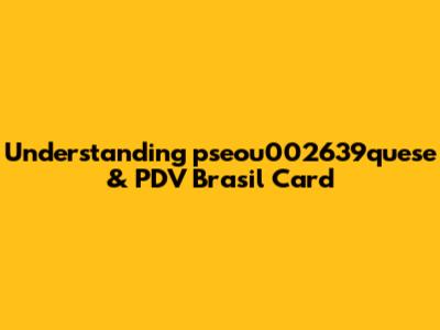 \nLet's dive into the world of pseou002639quese and PDV Brasil Card. You might be scratching your head, wondering what these terms even mean. Don't worry; you're not alone! In this article, we'll break down each concept, explore their significance, and hopefully clear up any confusion. Whether you're a business owner, a consumer, or just someone curious about these topics, this guide is designed to provide you with a comprehensive understanding. So, buckle up and get ready to explore the ins and outs of pseou002639quese and PDV Brasil Card!