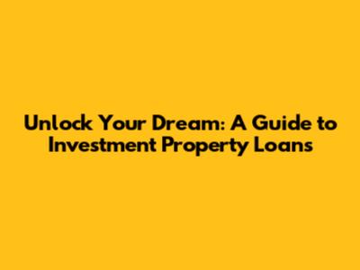 Unlock Your Dream: A Guide To Investment Property Loans