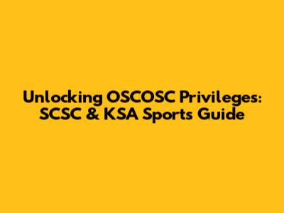 Unlocking OSCOSC Privileges: SCSC & KSA Sports Guide