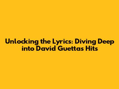 Unlocking The Lyrics: Diving Deep Into David Guetta's Hits