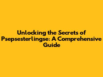 Unlocking The Secrets Of Psepsesterlingse: A Comprehensive Guide