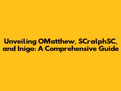 Unveiling OMatthew, SCralphSC, And Inigo: A Comprehensive Guide