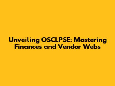 Unveiling OSCLPSE: Mastering Finances And Vendor Webs