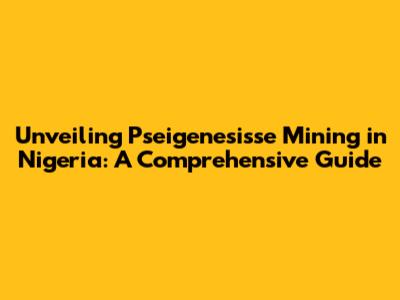 Unveiling Pseigenesisse Mining In Nigeria: A Comprehensive Guide