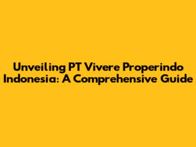 Unveiling PT Vivere Properindo Indonesia: A Comprehensive Guide