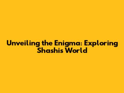 Unveiling The Enigma: Exploring Shashi's World
