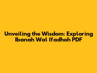Unveiling The Wisdom: Exploring 'Ibanah Wal Ifadhoh' PDF