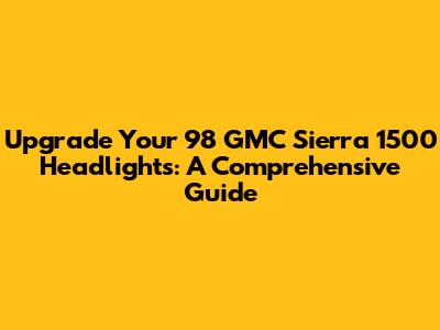 Hey there, truck enthusiasts! If you're cruising around in a classic 1998 GMC Sierra 1500, you know how important it is to keep your ride looking and performing its best. And, let's be real, the headlights are a crucial part of that equation. Not only do they keep you safe on the road, but they also significantly impact your truck's overall appearance. So, if your '98 Sierra's headlights are looking a little dim, yellowed, or just plain outdated, it might be time for an upgrade. In this comprehensive guide, we'll dive deep into everything you need to know about upgrading your 1998 GMC Sierra 1500 headlights. We'll cover your options, from simple bulb replacements to complete headlight assembly swaps, ensuring you have all the knowledge to make the best choice for your needs and budget. We'll also touch on some of the key considerations, such as legal requirements, installation tips, and where to find the best parts. So, buckle up, grab your tools (or maybe just your wallet, depending on your comfort level with DIY projects), and let's get started on illuminating your path to a brighter, safer, and more stylish ride!