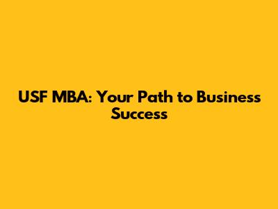 USF MBA: Your Path To Business Success