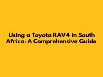 Using A Toyota RAV4 In South Africa: A Comprehensive Guide
