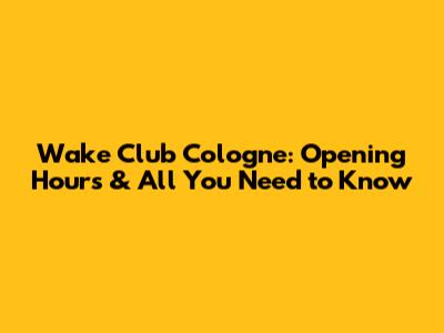 Wake Club Cologne: Opening Hours & Details
