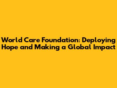 World Care Foundation: Deploying Hope And Making A Global Impact